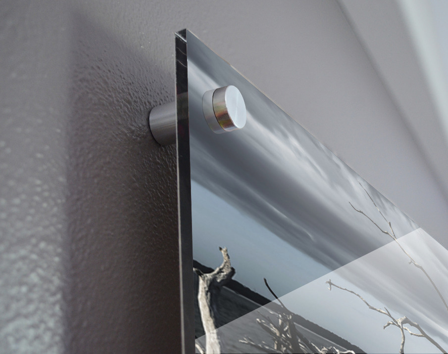 Printed to the edge - Ready to hang - provided with 4 premium polished aluminum stand off ( wall screws and mounting hardware provided )